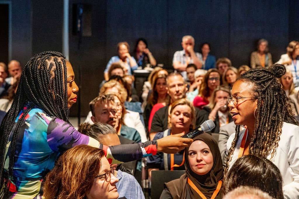 Schrijver, onderzoeker en expert democratische kwaliteit Marije van den Berg deelde een aantal prikkelende inzichten met de zaal. Bijvoorbeeld dat mensen te veel van leiders verwachten, terwijl de benodigde expertise vaak ver buiten de vergaderkamers ligt. Ook benadrukte ze de kracht van de gemeenschap. Want de complexiteit van de samenleving maakt haar wendbaar: “Om onze complexe problemen op te lossen hebben we de complexiteit van de samenleving dus juist nodig.”